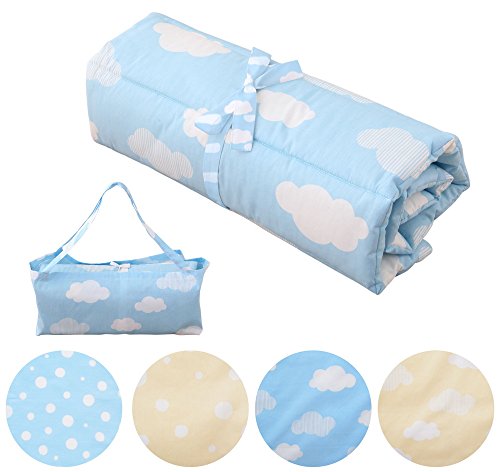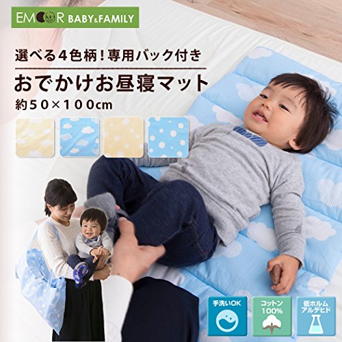 エムール 収納バッグ付き『お出かけ お昼寝マット』 雲柄 ブルー