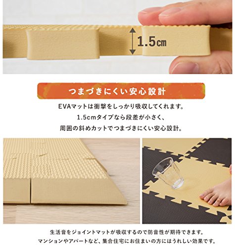 エムール 厚み1.5cm EVA ジョイントマット 2畳用 『くらしに馴染むEVAジョイント フロアマット』 49枚セット ブラウンプレーン