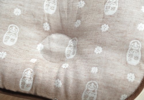 - かわいいマトリョーシカ柄の、かわいいガーゼ生地の枕。一個で二役、赤ちゃん用の枕にも、授乳クッションにも使えます。裏側には「授乳補助ベルト」が付いているので、ママの腕に付けて赤ちゃんの頭をやわらかく支えることができます。