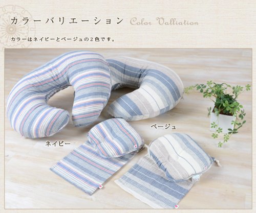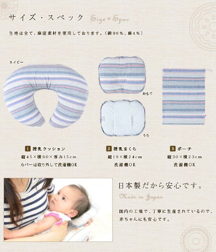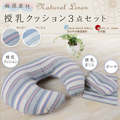 日本製 麻混 授乳クッション 3点セット(授乳クッション+授乳枕+ポーチ) (ネイビー)