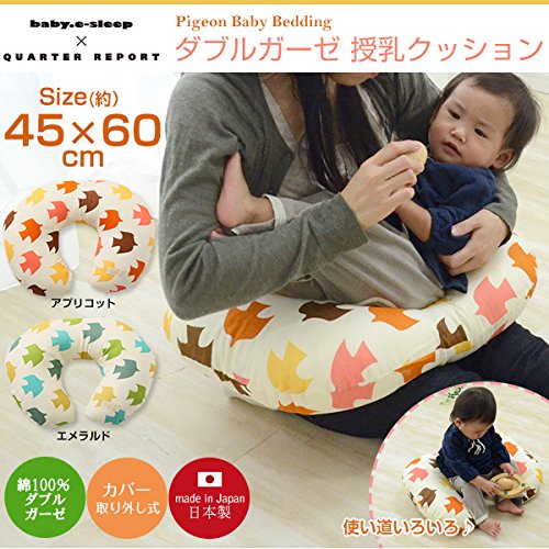 QUARTER REPORT 「ピジョン」 授乳クッション マザークッション 綿100% 2重ガーゼ 授乳クッション 日本製 (エメラルド(グリーン系))