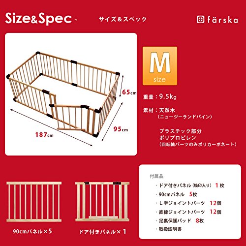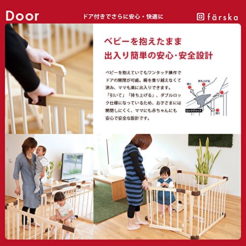 - ママ一人でも簡単組み立て!天然木のベビーサークル ファルスカのジョイントプレイペン。北欧風のシンプルなデザインが魅力。ドア付きMサイズセット。