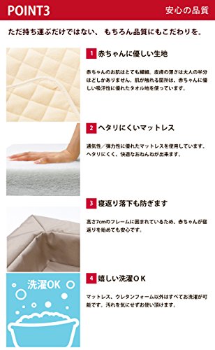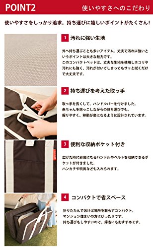 - このファルスカコンパクトベッドシリーズは、どんな場所でもいつも通りのおねんねスペースに早変わり。赤ちゃんも安心して、スヤスヤ眠ってくれます。布団、まくら、おもちゃなどまとめて収納できるから移動もらくらく。必要な時はさっと広げて、使わない時は折りたたんでおけば場所を取りません。マンション住まいの方でも安心して使えるサイズ感です。