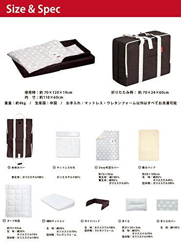 - 【本体カバー】表生地:ポリエステル100%/【マットレス】ポリエステル100%/【2Way布団カバー】約73×95cm 表生地 :綿100% 裏生地 : 綿80%、ポリエステル20%