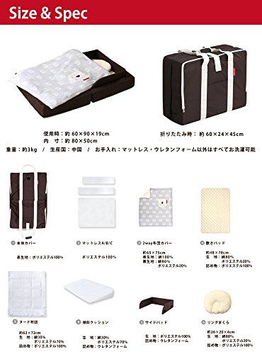 - 【本体カバー】表生地:ポリエステル100%/【マットレス】ポリエステル100%/【2Way布団カバー】約65×75cm 表生地 :綿100% 裏生地 : 綿80%、ポリエステル20%