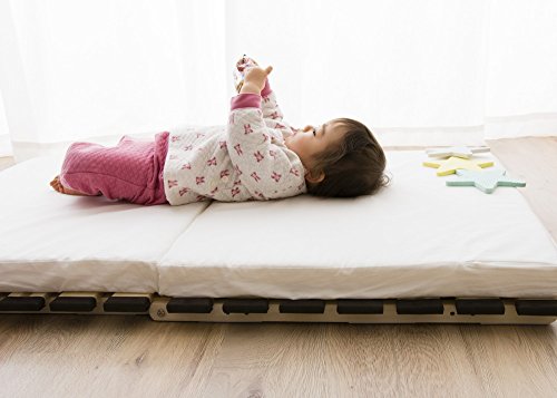 - 寝汗をたくさんかき、時にはオネショもする赤ちゃん。実に大人の2~3倍の寝汗をかくといわれています。その汗をシーツや敷きふとんが吸い込み、やがて蒸れやカビとなり、お布団を傷め、赤ちゃんの睡眠にも悪影響となります。すのこベッドは、お布団と床の間に隙間をつくり、そんな敷き布団の湿気を発散させるアイテムです。一般的なベビー敷き布団に対応するサイズです。