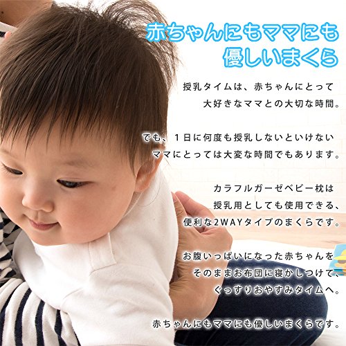 - 大人気のカラフルガーゼシリーズにまくらが登場。綿100%のダブルガーゼでお肌にもやさしく、補助ベルトは通気性の良い綿メッシュ生地です。授乳用としても使える便利な2wayタイプ。カラフルガーゼのお布団セットやお昼寝布団セットとご一緒にいかがでしょうか。