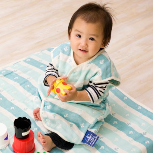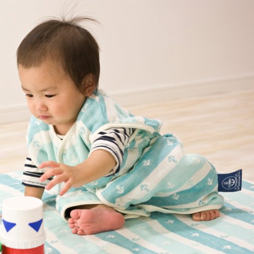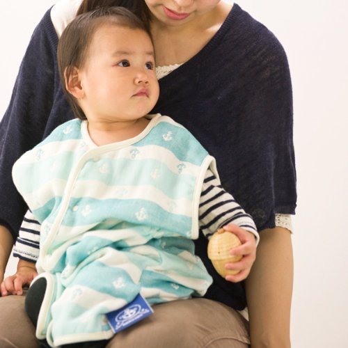 エムール ベビーガーゼスリーパー イカリボーダー柄 日本製 アクアブルー [Baby Product] [Baby Product]
