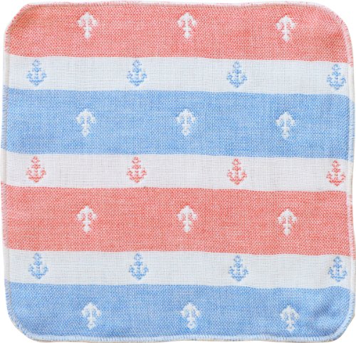 エムール ガーゼハンカチ 23×23cm イカリボーダー柄 4重織 日本製 ロイヤルトリコロール