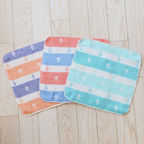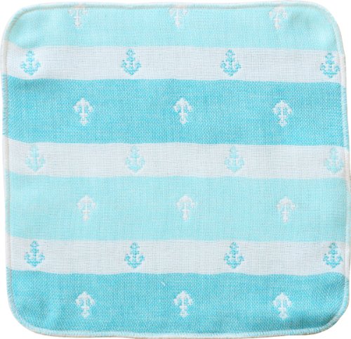エムール ガーゼハンカチ 23×23cm イカリボーダー柄 4重織 日本製 アクアブルー