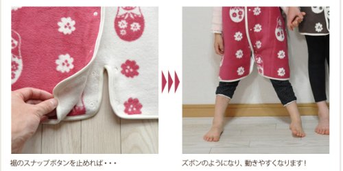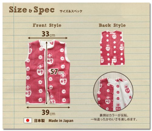 - かわいいマトリョーシカパターンを日本製の安全安心高品質な綿毛布のスリーパーにしました。当店でしか販売していないため、プレゼント・誕生日・出産祝いにもぴったり。赤ちゃんのうちは、おねんねの際のスリーパーとして。小さい頃は、脚部のボタンを留めてズボンの様に。大きくなったらベストのようにお使いいただけます。