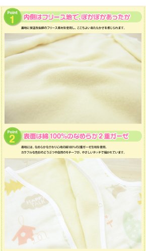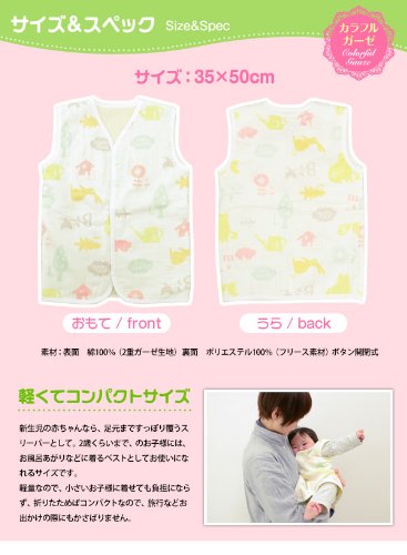 - 【仕様】ボタン開閉式 表地は爽やかなガーゼ、内側はぽかぽかフリース素材であったか。