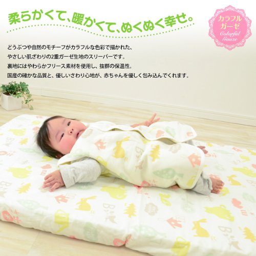 エムール 日本製 カラフルガーゼ ぽかぽかベビースリーパー どうぶつ柄