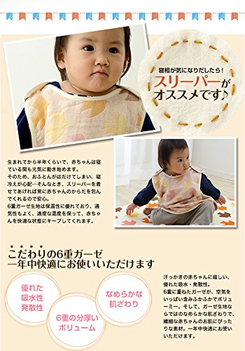 - 生まれてから半年くらいで、赤ちゃんは寝ている間も元気に動き始めます。そのため、おふとんがはだけてしまい、寝冷えが心配…そんなとき、スリーパーを着せてあげれば常に赤ちゃんのからだを包んでくれるので安心。6重ガーゼ生地は保温性に優れており、通気性もよく、適度な温度を保って、赤ちゃんを快適な状態にキープしてくれます。