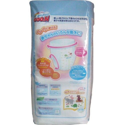 優しい肌ざわりと下着のようなはき心地 ママの手みたいに、ふんわりやさしい 1.新うす型吸収体採用で吸収力アップ 2.空気を織り込んだ「ふんわりギャザー」で、やわらかな肌ざわり。 3.「やわらかフィット構造」で、おなかぷっくりでもウエストのびのび 4.全面通気性バックシート使用 5.おしっこ お知らせマークつき。 【適用】 体重12~20Kgまで 【素材】 表面材・・・ポリオレフィン系不織布 吸水材・・・綿状パルプ、高分子吸水材、吸収紙、ポリオレフィン系不織布 防水材・・・ポリオレフィン系フィルム 止着材・・・ポリオレフィン系フィルム 伸縮材・・・ポリウレタン 結合材・・・スチレン系合成樹脂 等