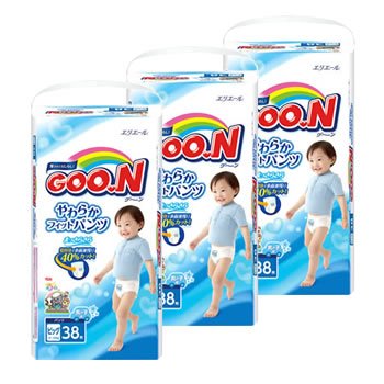 【ケース販売】 エリエール グーン やわらかフィットパンツ 男の子用 ビッグサイズ (38枚入×3個)