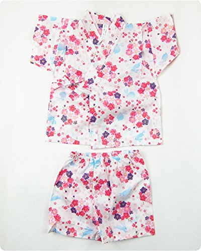 【送料無料メール便】【ER2550W5】甚平 スーツ ベビー 子供 キッズ 桜柄(ラメ入り) 花柄 夏祭り 盆踊り 女の子 【80cm 90cm 95cmサイズ】【日本製】 (95cm, 白)