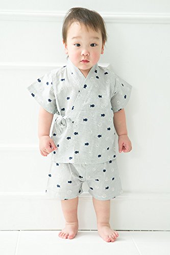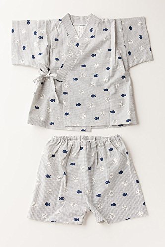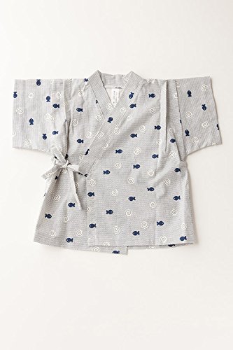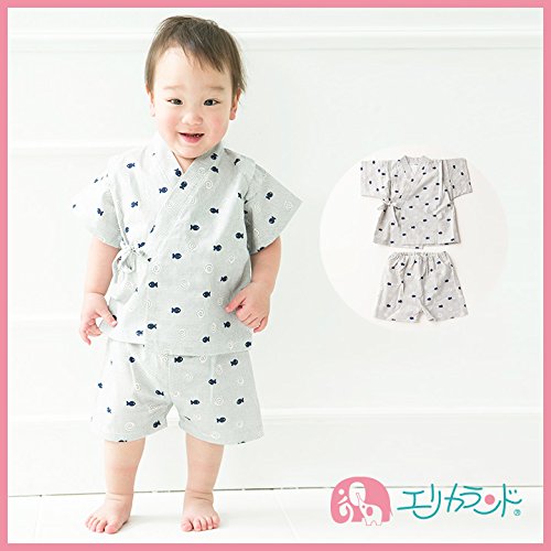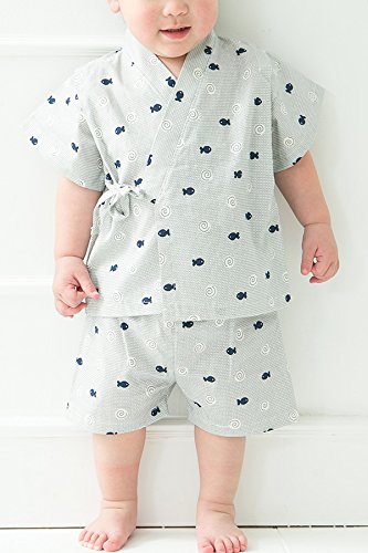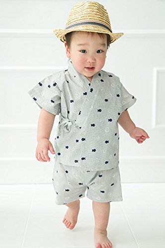 【送料無料メール便】【ER794S5】甚平 スーツ ベビー 子供 キッズ 渦巻き魚柄/ 男の子 夏祭り 盆踊り グレー 【70cm 80cm 90cm 95cmサイズ】【日本製】 (95cm, 青)