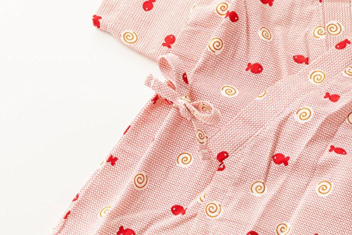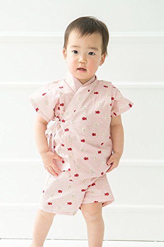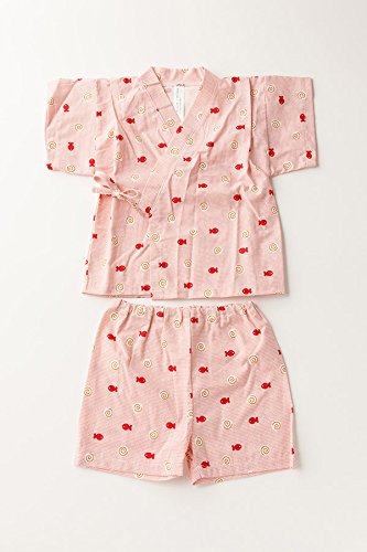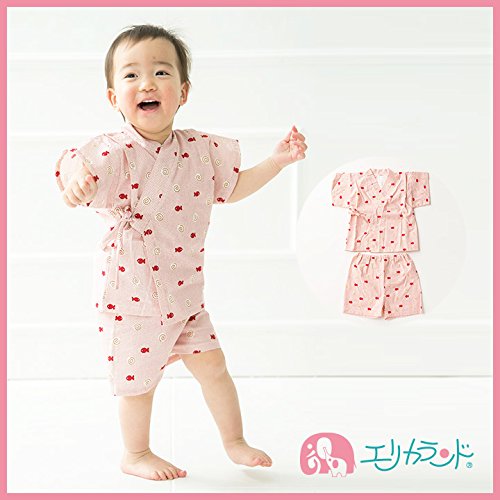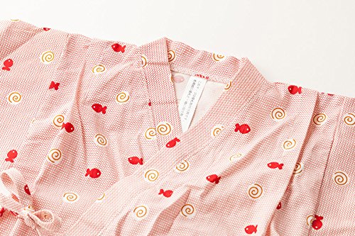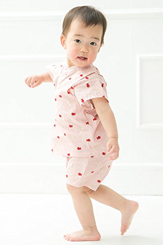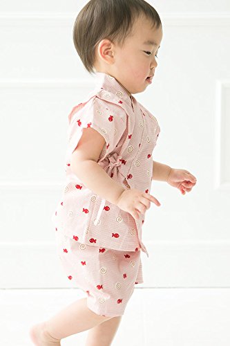 【送料無料メール便】【ER2089R9】甚平 スーツ ベビー 子供 キッズ 渦巻き魚柄 花柄 夏祭り 盆踊り 女の子 【70 80cm 90cm 95cmサイズ】【日本製】 (90cm, 赤)