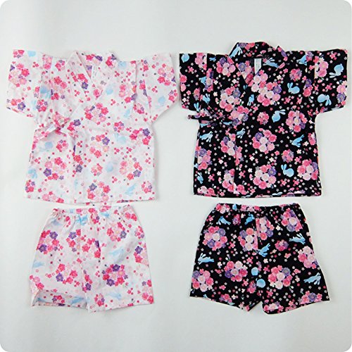 【送料無料メール便】【ER2550W9】甚平 スーツ ベビー 子供 キッズ 桜柄(ラメ入り) 花柄 夏祭り 盆踊り 女の子 【80cm 90cm 95cmサイズ】【日本製】 (90cm, 白)