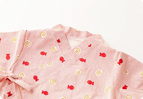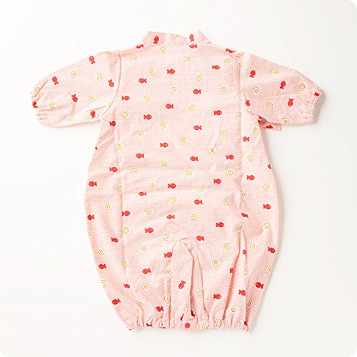 【送料無料メール便】【ER2557】甚平 コンビドレス 渦巻き魚柄 新生児 ベビー 女の子 夏祭り お盆 【50 60cmサイズ】 (赤)