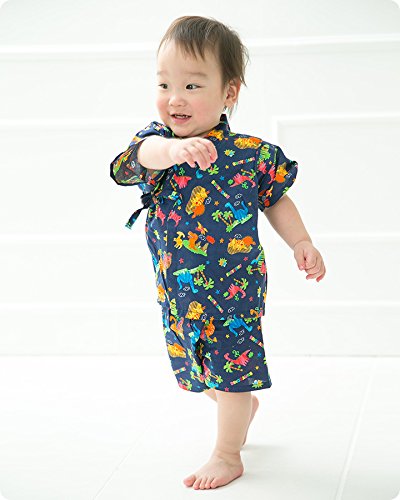 【送料無料メール便】【ER2331S9】甚平 スーツ ベビー 子供 キッズ 恐竜柄 夏祭り 盆踊り 男の子 【80cm 90cm 95cmサイズ】【日本製】 (90cm, 青)