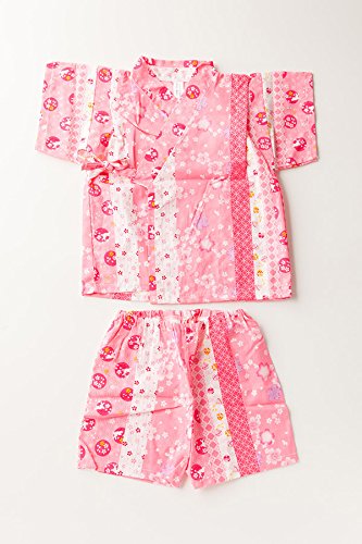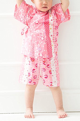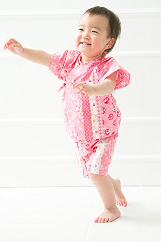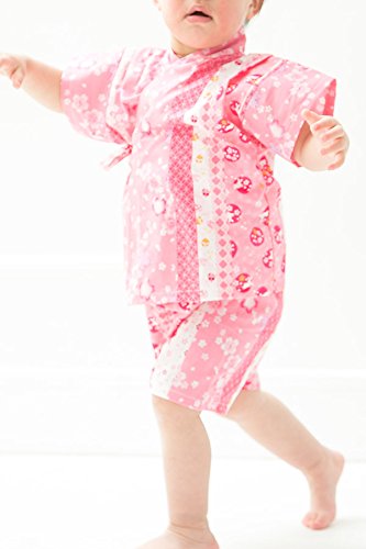 【送料無料メール便】【ER2553P9】甚平 スーツ ベビー 子供 キッズ うさぎ柄 花柄 女の子 夏祭り 盆踊り ピンク 【80cm 90cm 95cmサイズ】【日本製】 (90cm, ピンク)