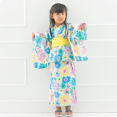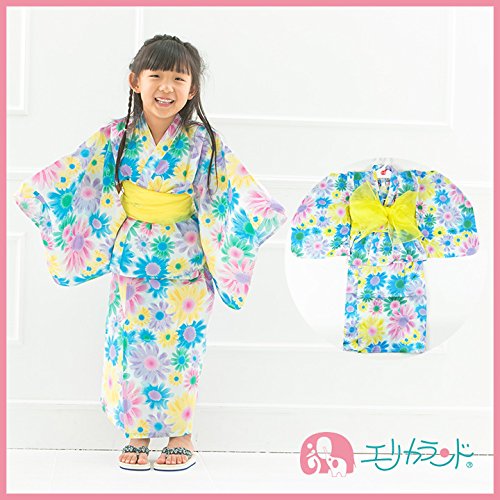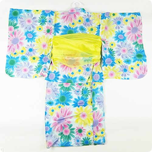【ER2802S1】 浴衣 サンドレス キッズ用 子供用 ジュニア用 帯付き ワンピース 上着 3点セット (110cm, 青)