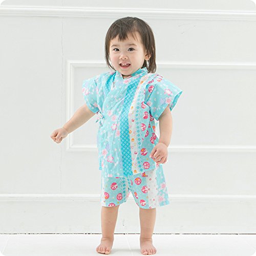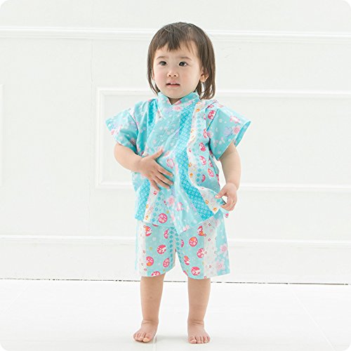 【送料無料メール便】【ER2790S5】甚平 スーツ ベビー用 子供用 女の子用 桜・ウサギ柄 80cm 90cm 95cm【日本製】 (95cm, 青)