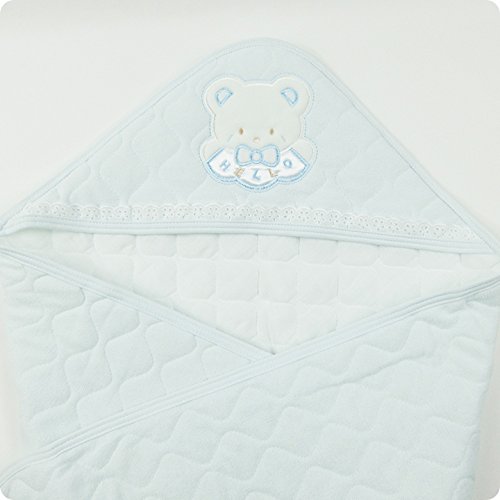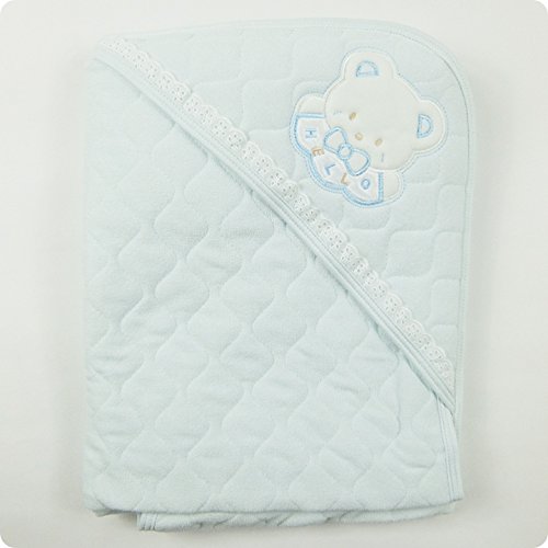 【ER2735S】アフガン/パイルキルトアフガン/おくるみ日本製(アニマル刺繍入り) (青)