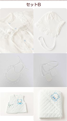 - 【セットB】 セレモニードレス2枚セット (ボタンカラー:青) セレモニードレス用スタイ・ミトンセット パイルキルトベスト (カラー:青) パイルキルトアフガン (カラー:青)