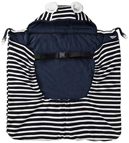 【ER2700-2475S】フットマフ ケープ マント ポンチョ 子供 ベビー キッズ 暖かい中綿入り 星柄 ボーダー柄 アニマル 耳・しっぽ付き 抱っこ紐用 ベビーカー対応 内側ゴム入り フィッシュクリップ付 バックル付きベルト仕様 (ボーダー柄 紺)