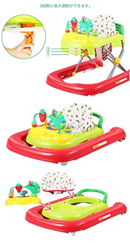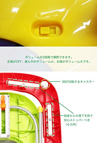 自分の脚の力で進むので脚力がつきます。前輪タイヤは操作しやすい360度回転するキャスター。お子さまの興味をひくカラフルでかわいいデザインです。トイユニットを取り外すとテーブルとして使用できます。コンパクトに折りたためて収納や持ち運びに便利です。高い視線で移動する楽しさがめばえます。つかまり立ちができるようになったら、手押し車で一人歩きをサポート!ハンドル下のボタンは、押すと音が鳴って光る機能つき(5曲)