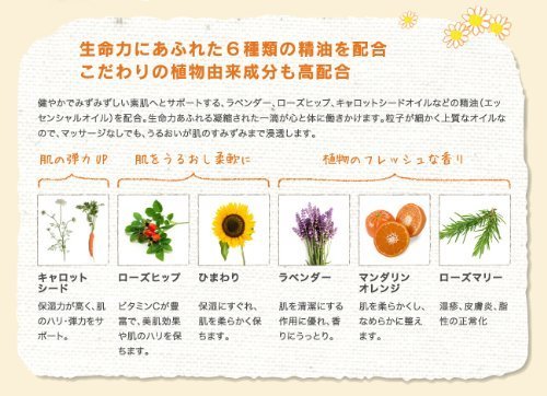 キャロットシードオイルにツヤとハリを与え、ヒマワリ油に含まれるビタミンが健康な肌へと導きます。 高配合(96%)のオーガニック成分とオイルの保湿力でしっかり保湿するのに、べたつきません。 あまったら、ベビーマッサージにもお使いいただけます。