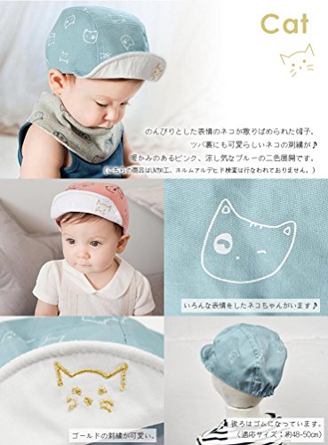 【ノーブランド品】ベビー キッズ キャップ 48-50cm ベビー,ネコ(ブルー)