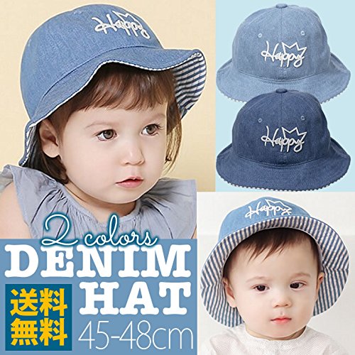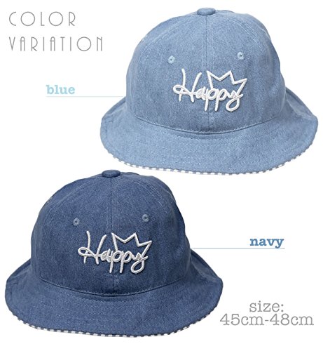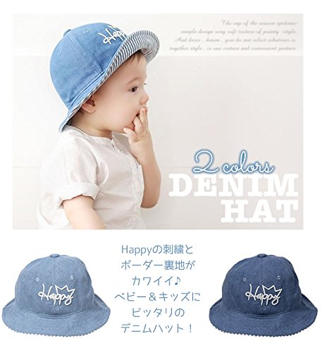 - Happyの刺繍とボーダー裏地がカワイイ♪ ベビー&キッズにピッタリのデニムハット!