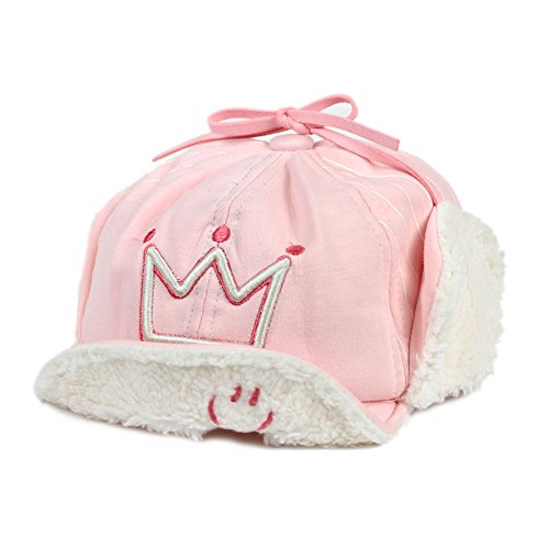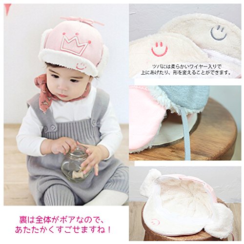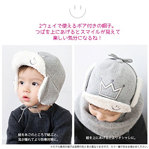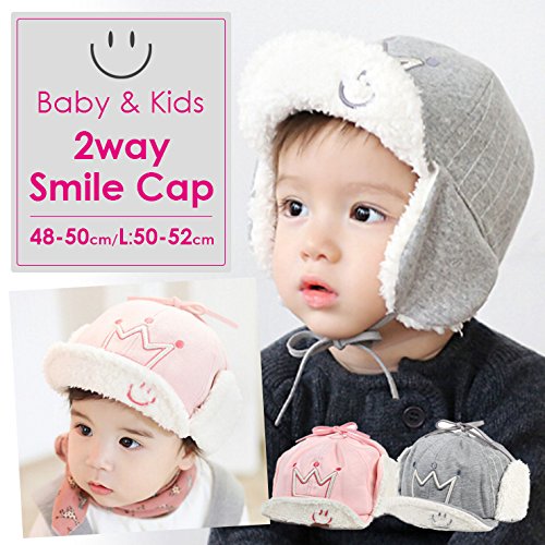 【ノーブランド品】 ベビー・キッズ 2wayボア付きスマイルキャップ イヤーフラップ耳あて付き帽子 48cm 49cm 50cm 51cm 52cm 男の子用 女の子用 ピンク・Largeサイズ