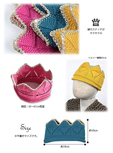 王冠のような形のニットの帽子。男の子も女の子も似合うデザインとカラーです。