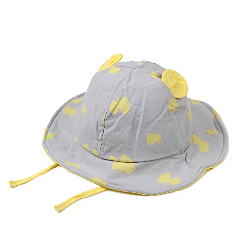 【ノーブランド品】ベビー耳付きつば広ハット あご紐付き 45cm-48cm 帽子 蝶グレー
