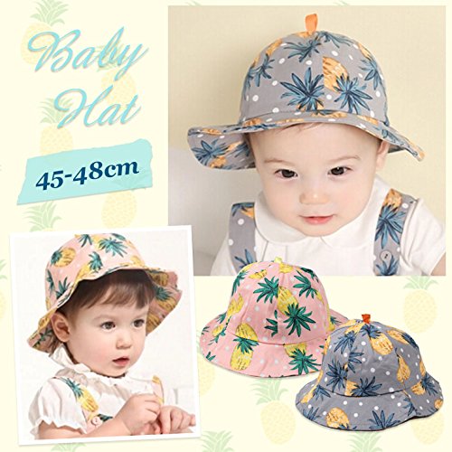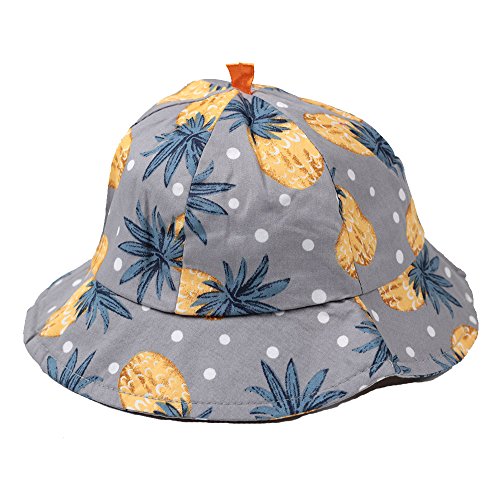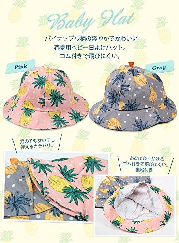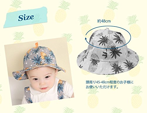 【ノーブランド品】ベビー パイナップル柄つば広ハット あごゴム付き 帽子45-48cm Gray