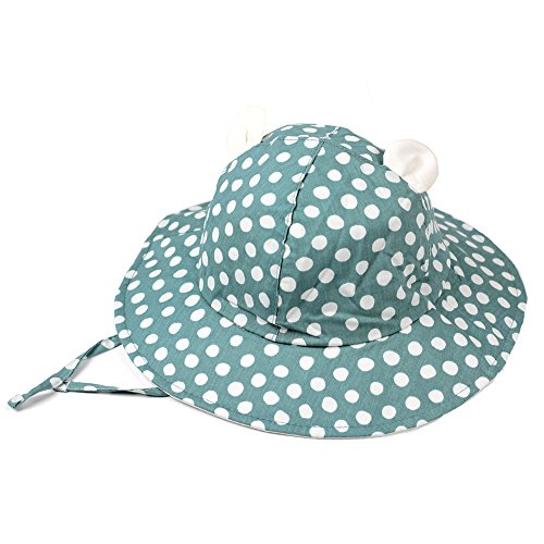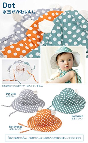 【ノーブランド品】ベビー耳付きつば広ハット あご紐付き 45cm-48cm 帽子 水玉グリーン