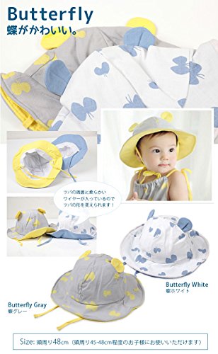 水玉と蝶柄がかわいいベビー用ハットです。男の子でも女の子でも使いやすいデザイン。