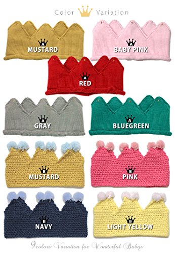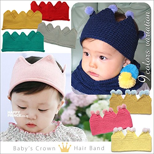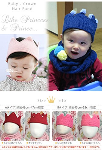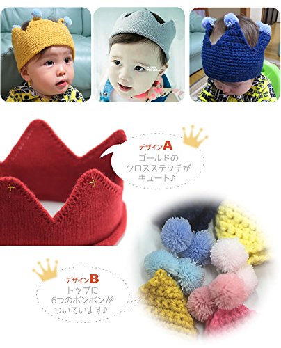 王冠型のニットヘアバンド♪ゴルドステッチとポンポン付きの2タイプ☆ クラウン型だから、かぶったらベビーが王子様やお姫様に変身しちゃうほどの可愛さに!出産祝いやハーフバースデーのプレゼントにもピッタリです☆ 素材アクリル サイズ A:置き寸:幅約20cm高さ10cm(頭回り約43-47cm程度) B:置き寸:幅約22cm高さ13cm(頭回り約45-52cm程度) ※商品によって誤差があります