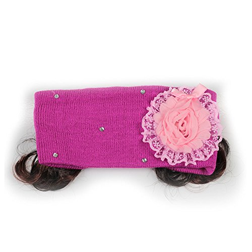 【ノーブランド品】ベビー・キッズ ウィッグ付き フラワーニットヘアーバンド ローズピンク