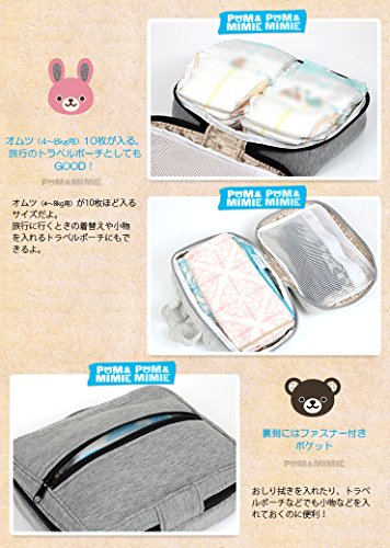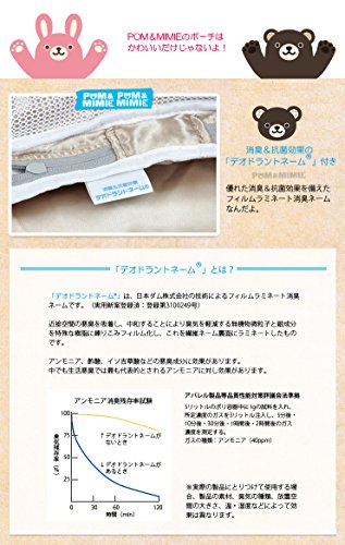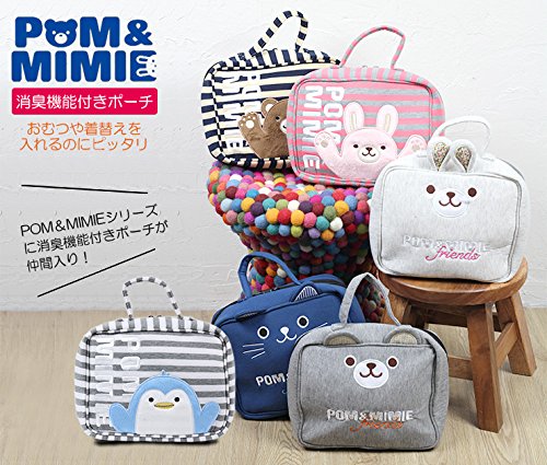 - POM&MIMIEシリーズのかわいい消臭と抗菌効果のあるデオドラントネーム付きのおむつポーチ、トラベルポーチ。