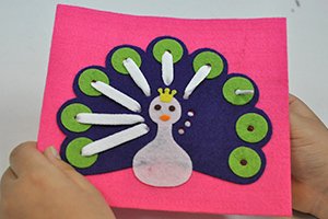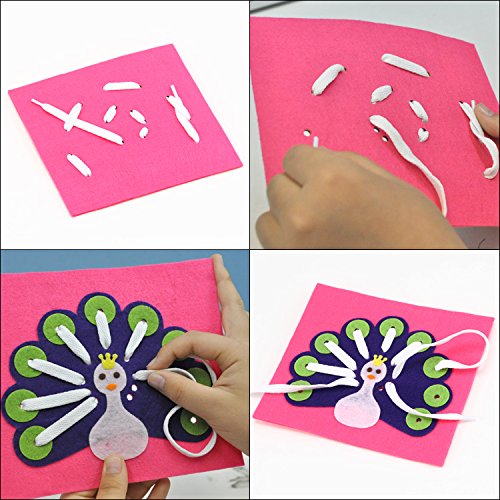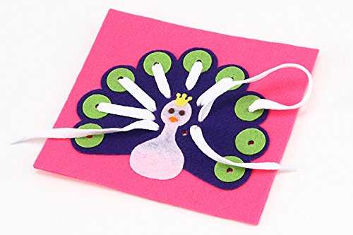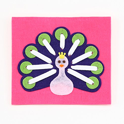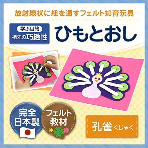 エレガンテポポ 放射線状に紐と通して指先の巧緻性を高める 手作りフェルト教材【ひもとおし 孔雀(くじゃく)】 日本製 fe-himoku
