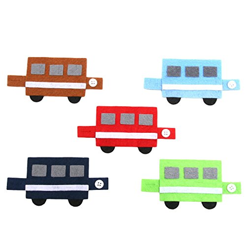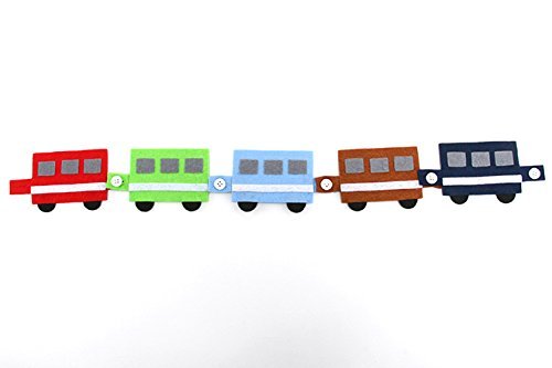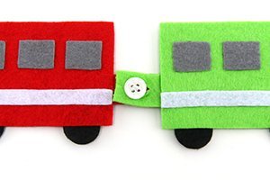 5両の電車をボタンで連結して遊びながら、 ボタンをとめる練習ができる教材です。