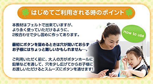 - 本教材はフェルトで出来ていますが、より永く使っていただけるように、 2枚合わせで少し固めに作ってあります。