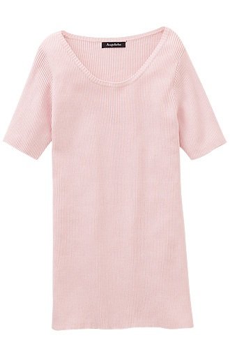 レーヨンと綿なので吸汗性がよいのも好ポイント。暑い季節にうれしい素材です 編み目の凹凸が縦ラインを強調して、伸縮性もあり、体に優しくフィットしてほっそり見えるリブニットです。
