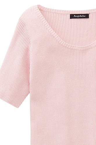 【 アウトレット 】 Angeliebe エンジェリーベ マタニティ クルー ネック リブ ニット 妊婦服 産前 産後 半袖 フリー ピンク